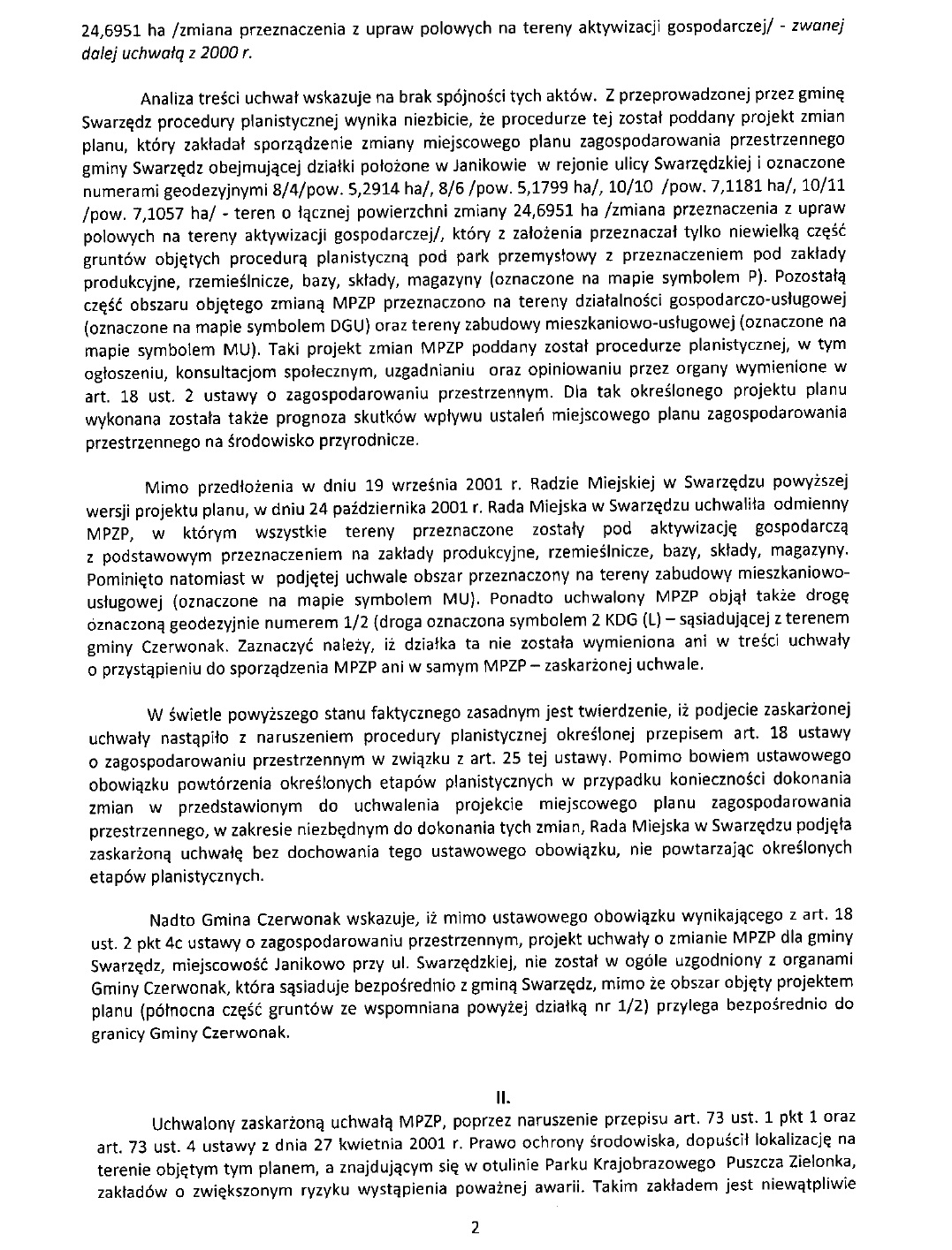 Treść wezwania w sprawie unieważnienia planu zagospodarowania skierowanego przez Czerwonak do Swarzędza